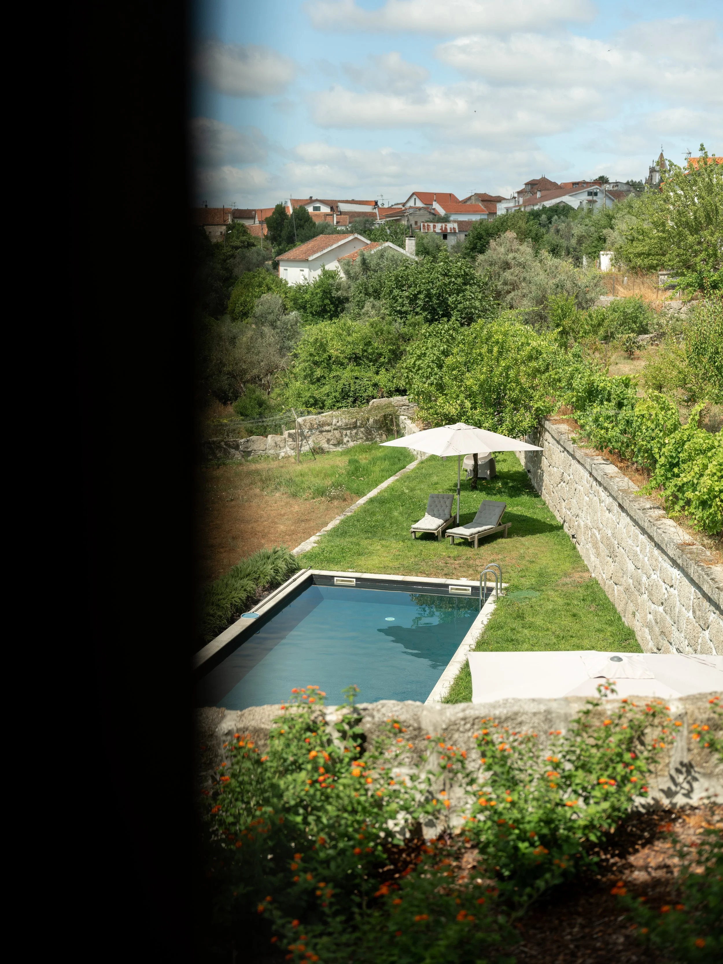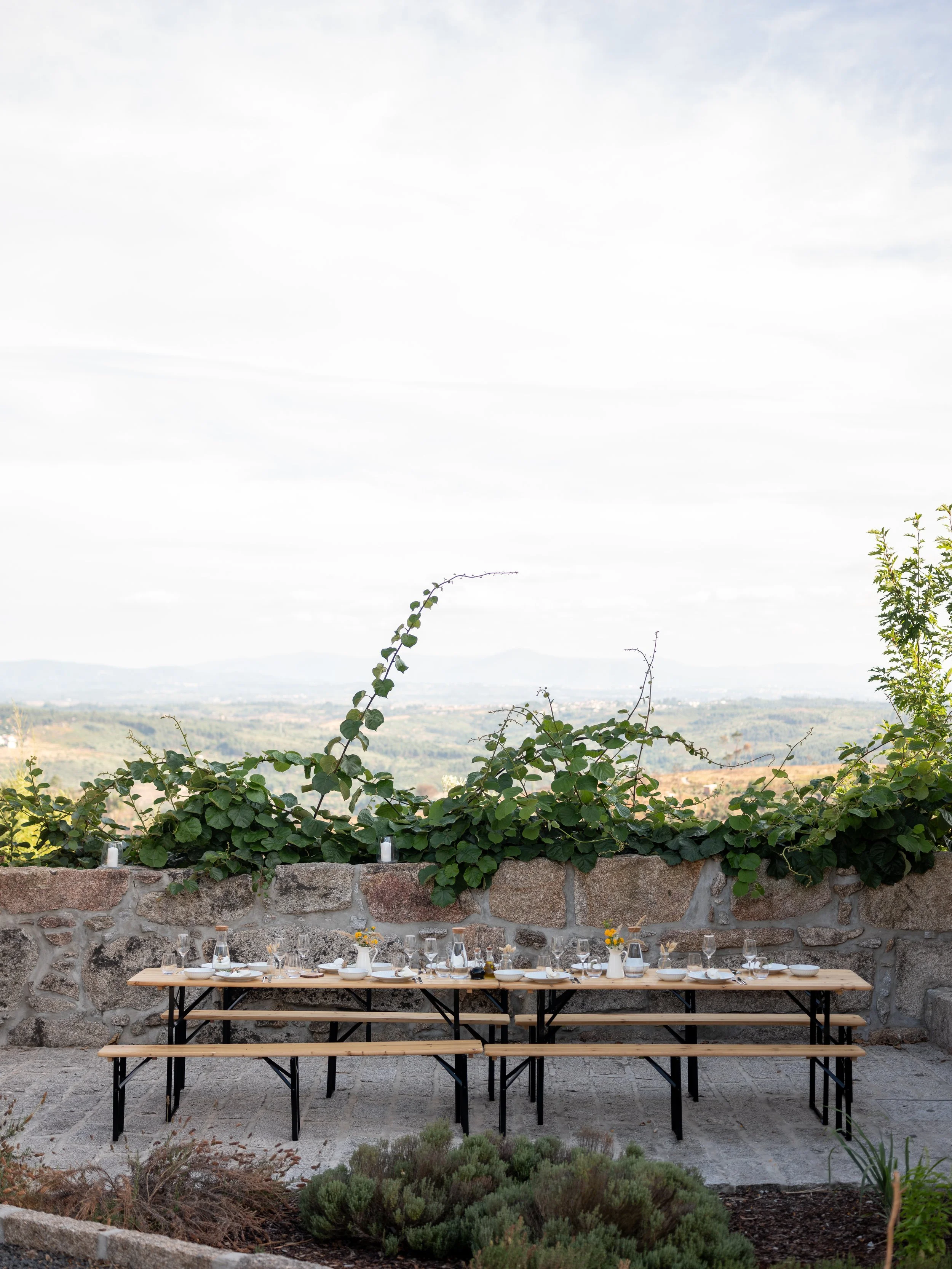 Nestled in the heart of central Portugal, just 90 minutes south of Porto, this retreat space sits within the natural landscape of the Dão region — surrounded by rolling vineyards, olive groves, cork oaks, and pine trees, with wide views across the valley.
